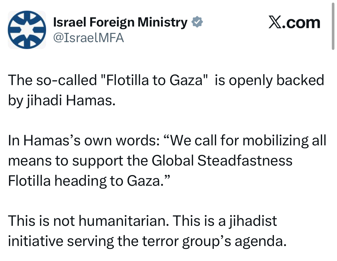 Another account, Mossad Commentary, repeatedly smeared solidarity actions as “terror cover,” while US-based zionist propagandist Eyal Yakoby linked the convoy to “Islamic terrorism.”