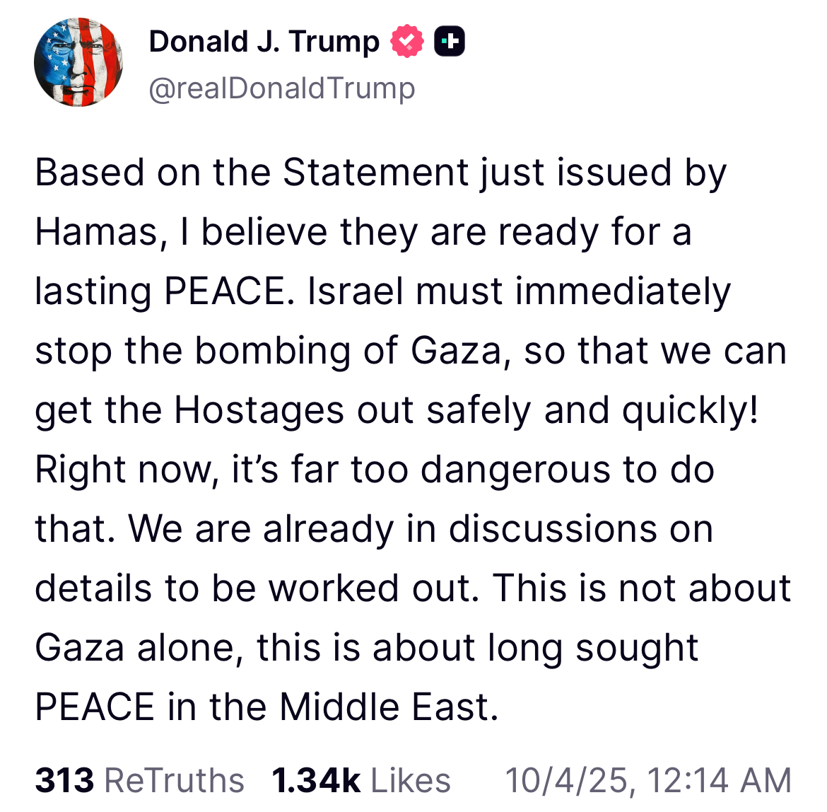 Trump Orders Israel to Halt Gaza Bombing After Hamas Response
