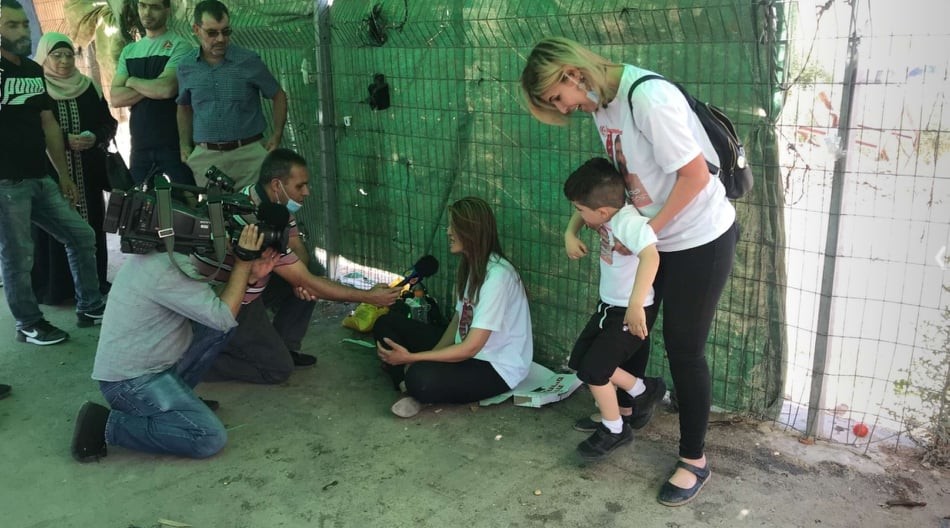 The family of Salah Hussein's family waiting for him to be released in front of Asqalan jail. [Arab 48]