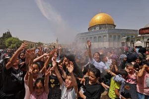 160,000 Muslim worshipers, mainly Palestinians, perform the last Friday prayer of Ramadan at Al-Aqsa mosque despite Israeli occupation restrictions.Palestinian youths risk their lives climbing the Israeli apartheid wall which separates Jerusalem from the occupied West Bank to get a chance to pray at Al-Aqsa mosque.Israeli occupation forces assault Palestinian youths at Qalandia checkpoint and obstruct their way to occupied Jerusalem to perform the last Friday prayer of Ramadan.A group of children enjoy a spray of water on a hot day under the sun in the courtyards of the Al-Aqsa mosque.Palestinian elderly men try to cross into occupied Jerusalem through Israeli checkpoints to perform the last Friday prayer of Ramadan.Israeli occupation forces raid the Al-Aqsa mosque following the Fajr prayer and attack worshipers, leaving dozens of them injured on April 29, 2022.