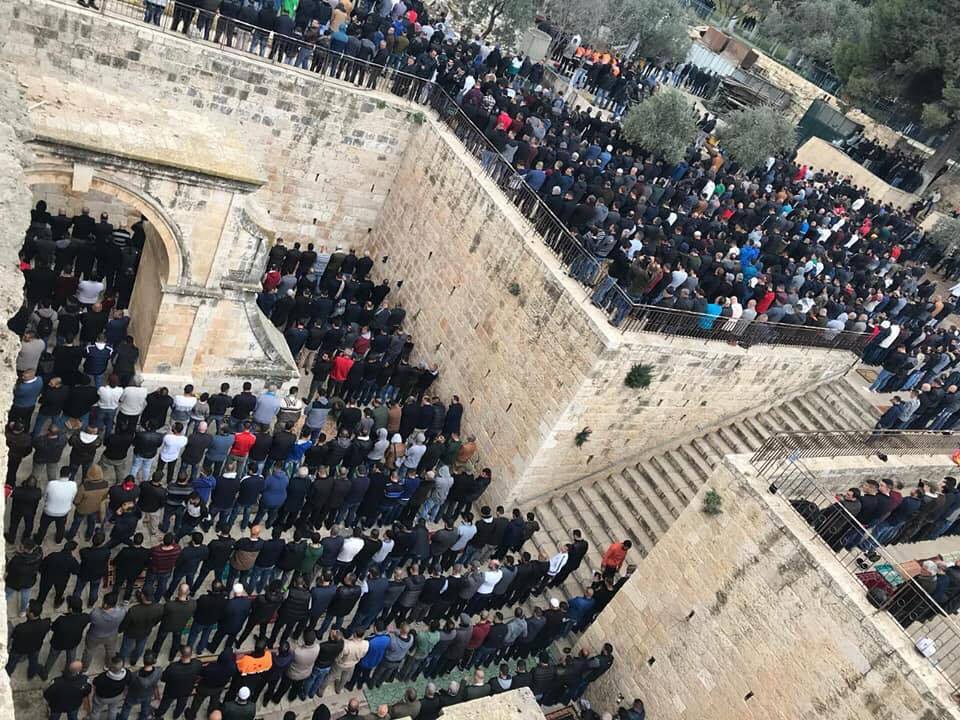 Sheikh Ekrema Sabri, who led the Friday sermon and prayer, confirmed that Bab al-Rahmeh was part and parcel of the holy Al-Aqsa Mosque and called on Israeli occupation forces not to interfere in the affairs of the Mosque.
