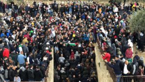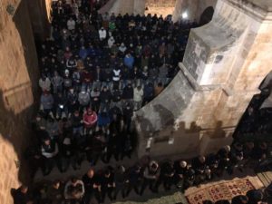 As they worshipers were entering the closed area, they chanted religious and national slogans and mounted the flag of Palestine to show triumph at the reopening of the area, which has only been open during the past 16 years to Jewish fanatics during provocative visits to the Muslim holy place, the third holiest site in Islam.