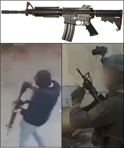 Top: M4 rifle, Left; armed man recorded in Jenin, Right: IDF soldier seen on bodycam released by the IDF