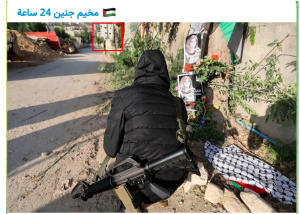 Maher added a note of caution and caveats to these calculations.“The estimate of the distance depends upon the air temperature, since this affects the speed of sound,” he said. While the calibre of bullet analysed is also consistent with reports that the bullet which killed Abu Akleh was 5.56mm, it is also important to note that this calculation does not account for the possibility that another weapon not visible or captured in videos from the scene could have been used. On top of this, Maher noted that even a slight difference in the assumed speed of the bullet could result in change to the calculations: “Probably the bigger question is my assumption about the bullet’s speed. If the bullet were travelling at a slower supersonic speed, the distance estimate would be longer. If the bullet were travelling at a faster supersonic speed, the distance estimate would be shorter.” Lines of Sight Images from the area provide more clues about where the shooter may have been located in relation to Abu Akleh and the other journalists. An image shared by the Jenin Camp Telegram channel was taken at the spot where Abu Akleh was killed. It is part of a set showing Palestinians placing flowers at the site of her death. The camera faces directly south, allowing us to infer the line of sight towards what would have been the position of the IDF convoy and the armed men.