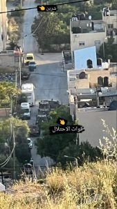The cemetery wall was not the only object obstructing the line of sight north along the road. Throughout the morning, there were vehicles parked on the west side of the road that would have made shooting north from the street-level position of the IDF convoy and those of the armed men in Video Two and Video Three more difficult, although not impossible. The obstructions in the line of sight caused by the cemetery wall and a yellow vehicle are evident in this image shared on Telegram. The image was taken on a hill south of the road, looking north towards the spot where Abu Akleh was killed.